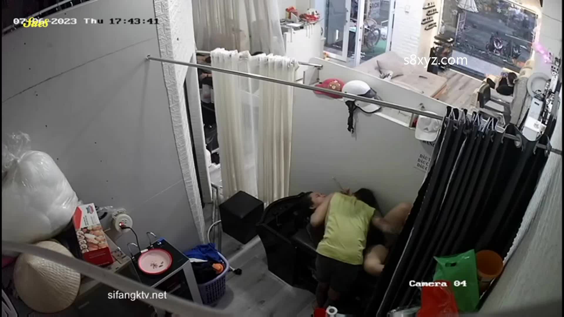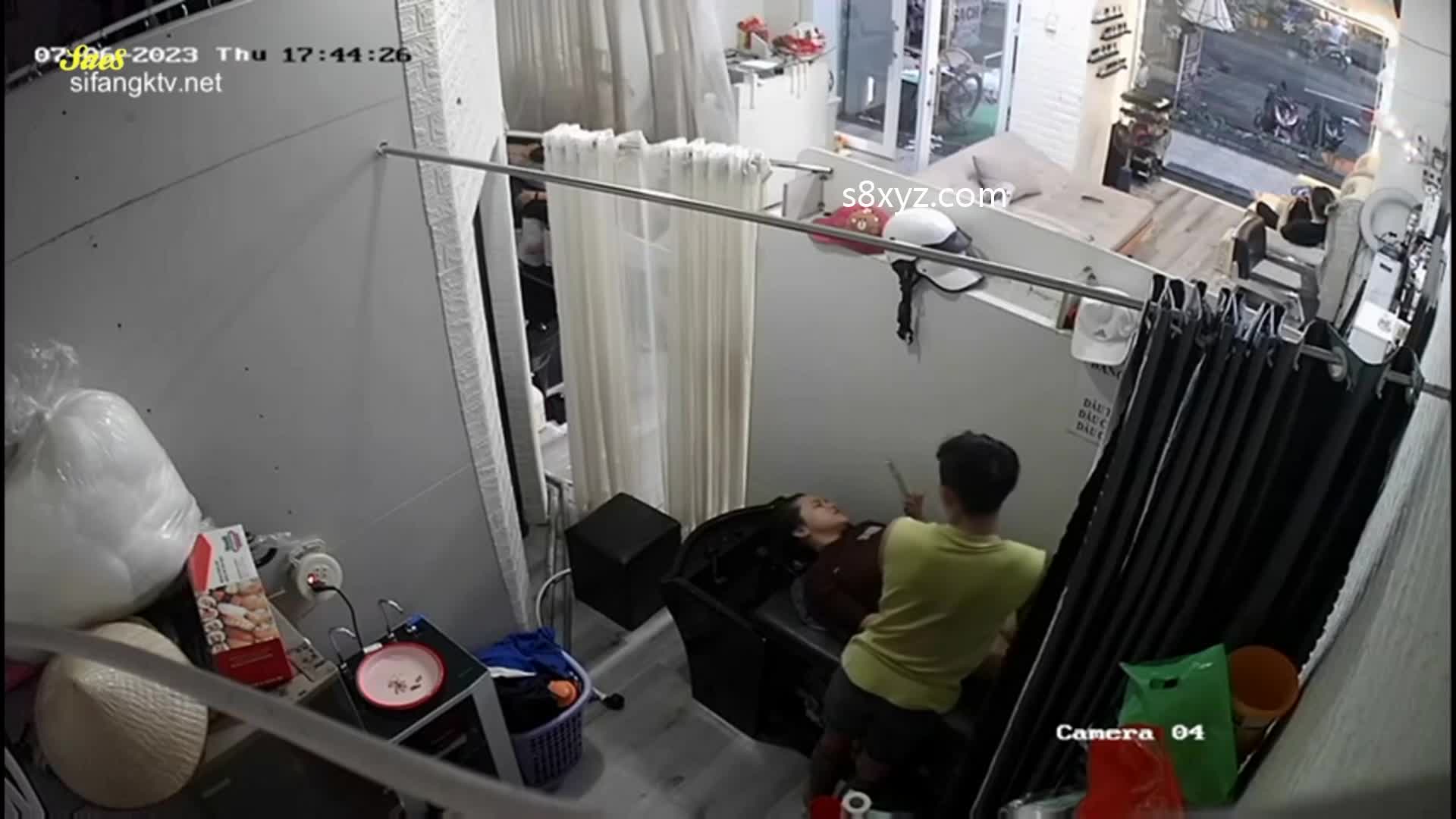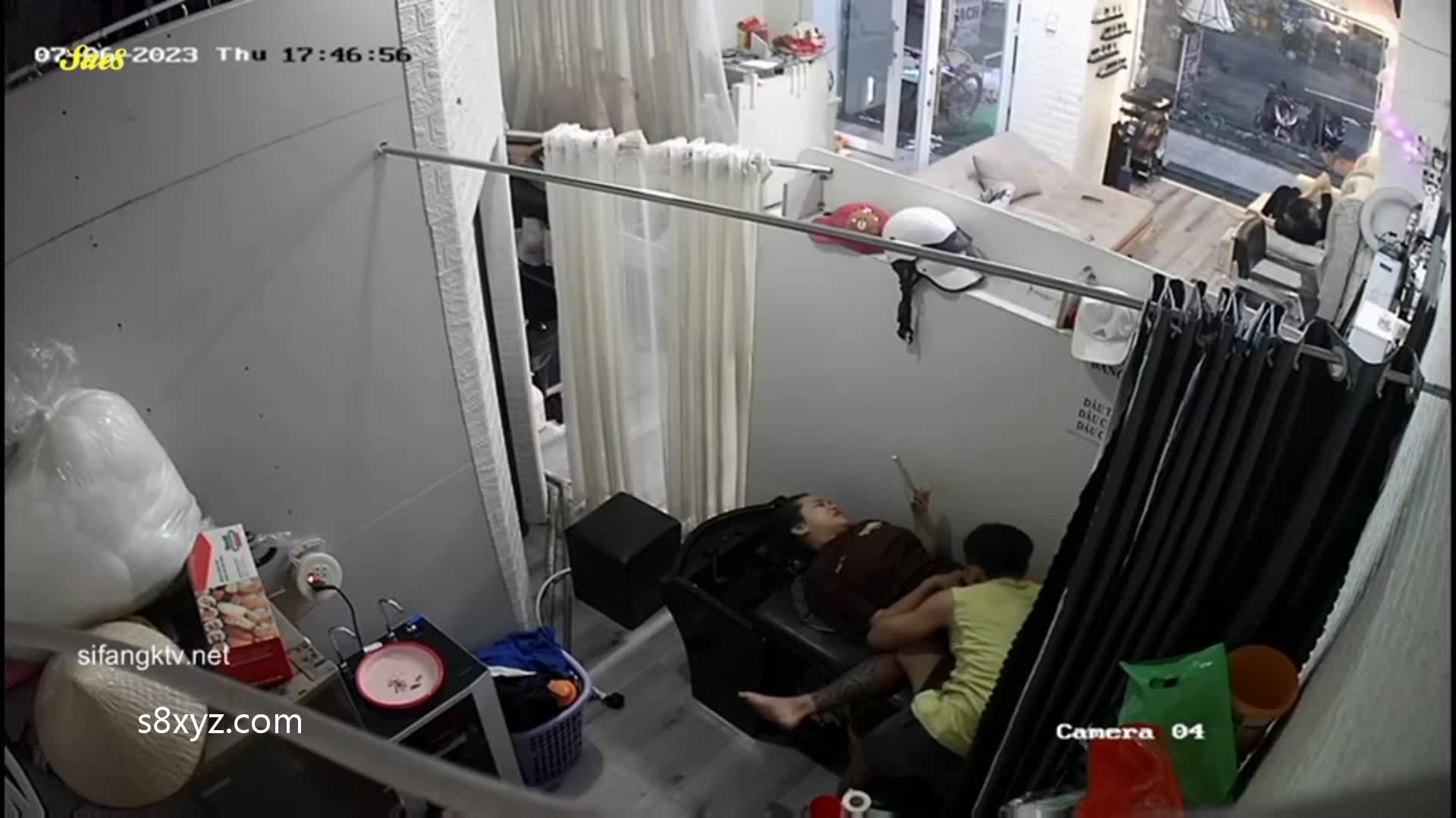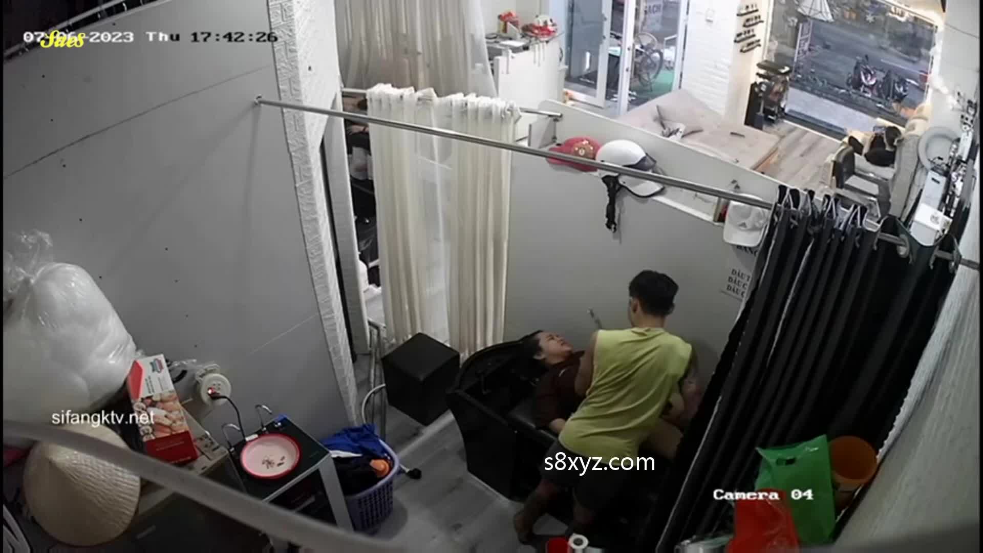 监控摄像头拍下少妇去发廊做头发被洗头小帅哥抓奶舔鲍好像感觉有点爽了。